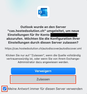 5. Lassen Sie die Konfiguration durch den Server zu: