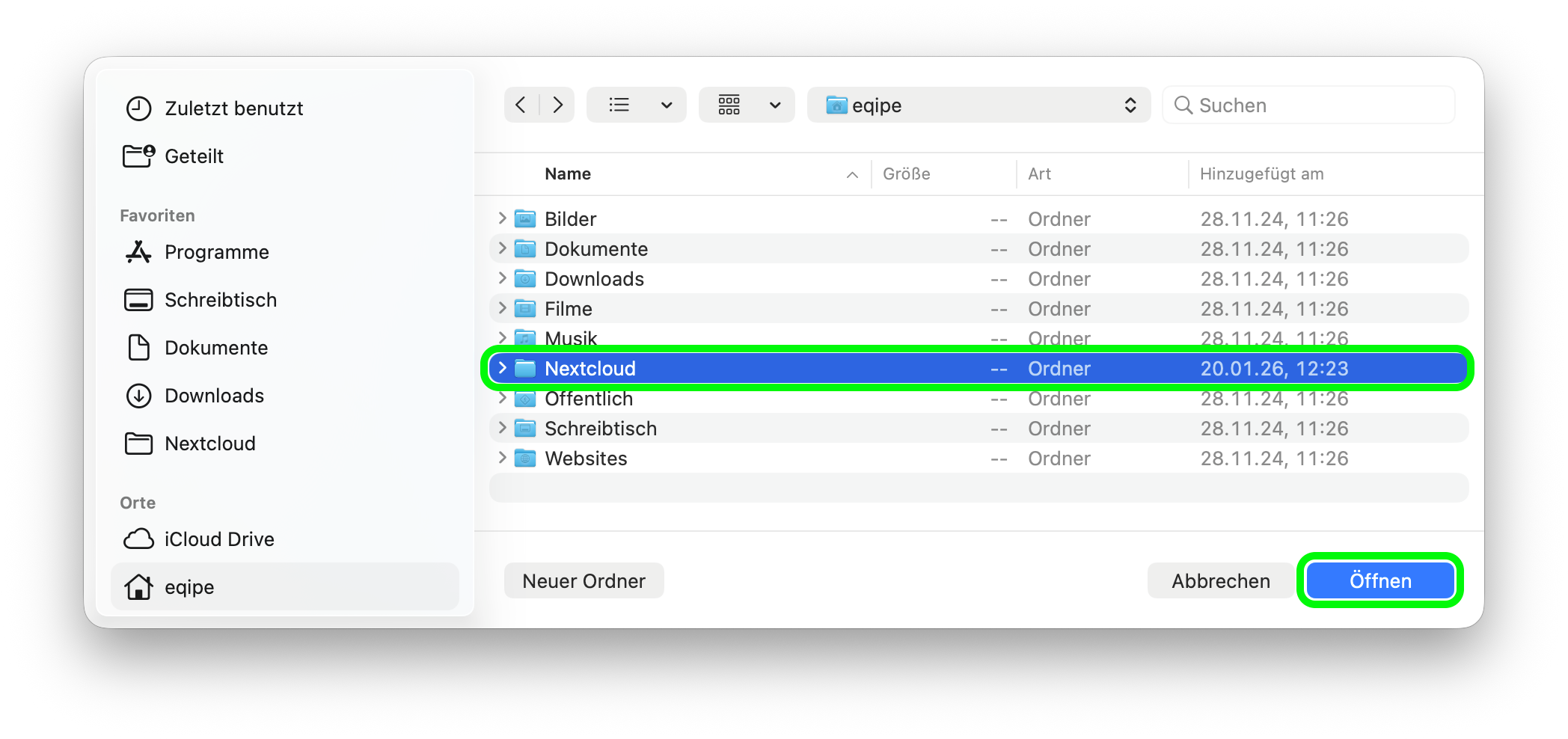 - Wählen Sie dort denselben Synchronisierungsordner wie bisher erneut aus (es öffnet sich ein macOS-Auswahldialog).