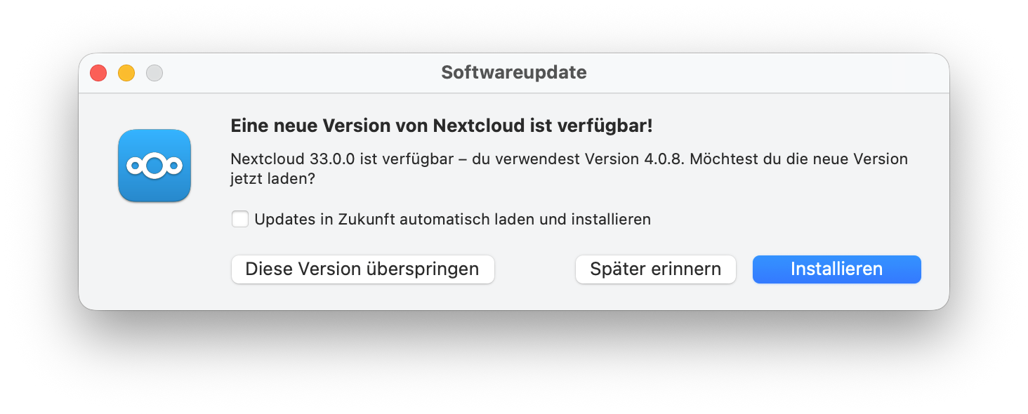 - Öffnen Sie nach dem Update auf die Version 33.0.0 den Nextcloud-Desktop-Client.