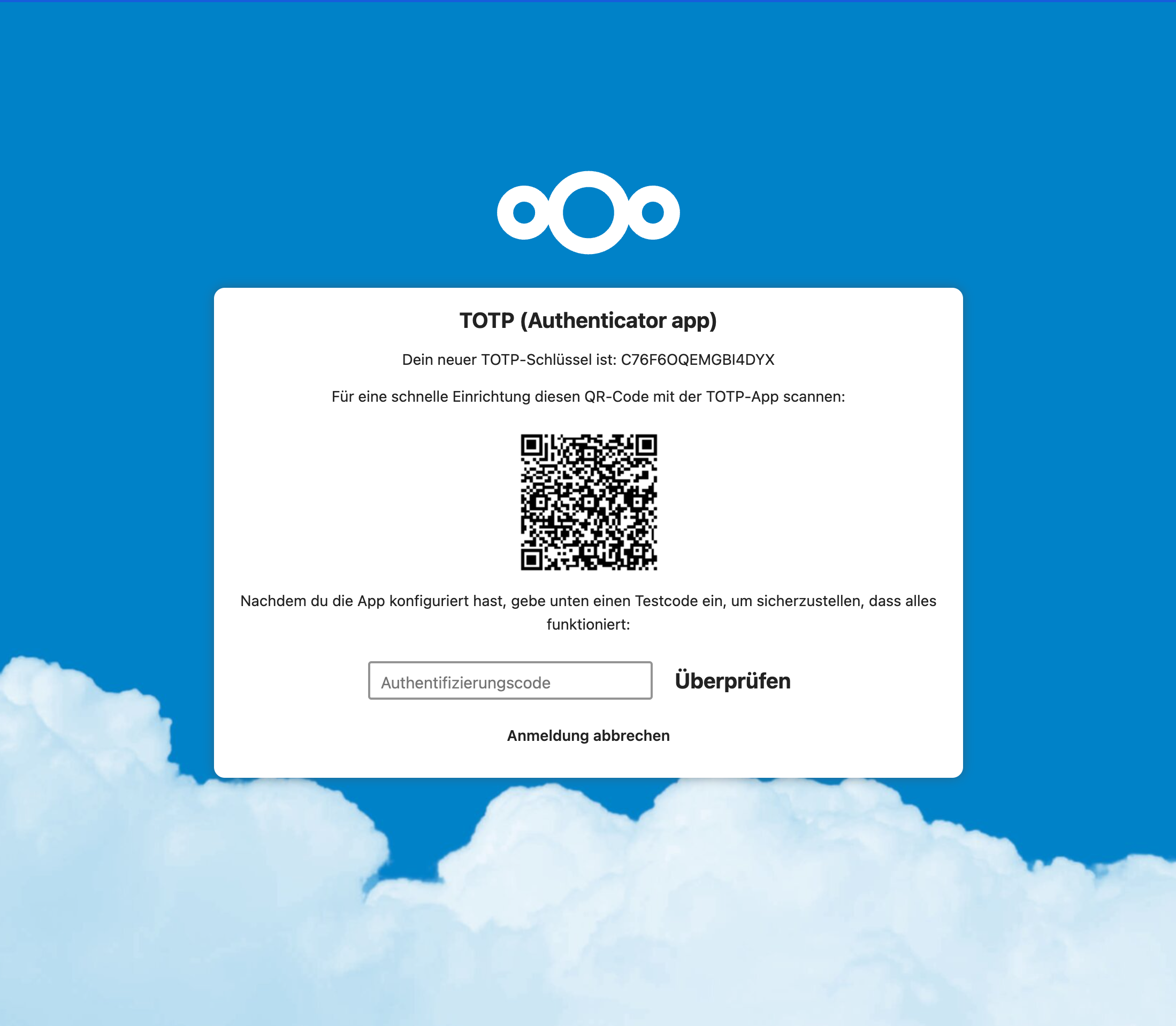 - Aktuellen Authentifzierungscode eingeben und anschliessend ist der Prozess abgeschlossen: